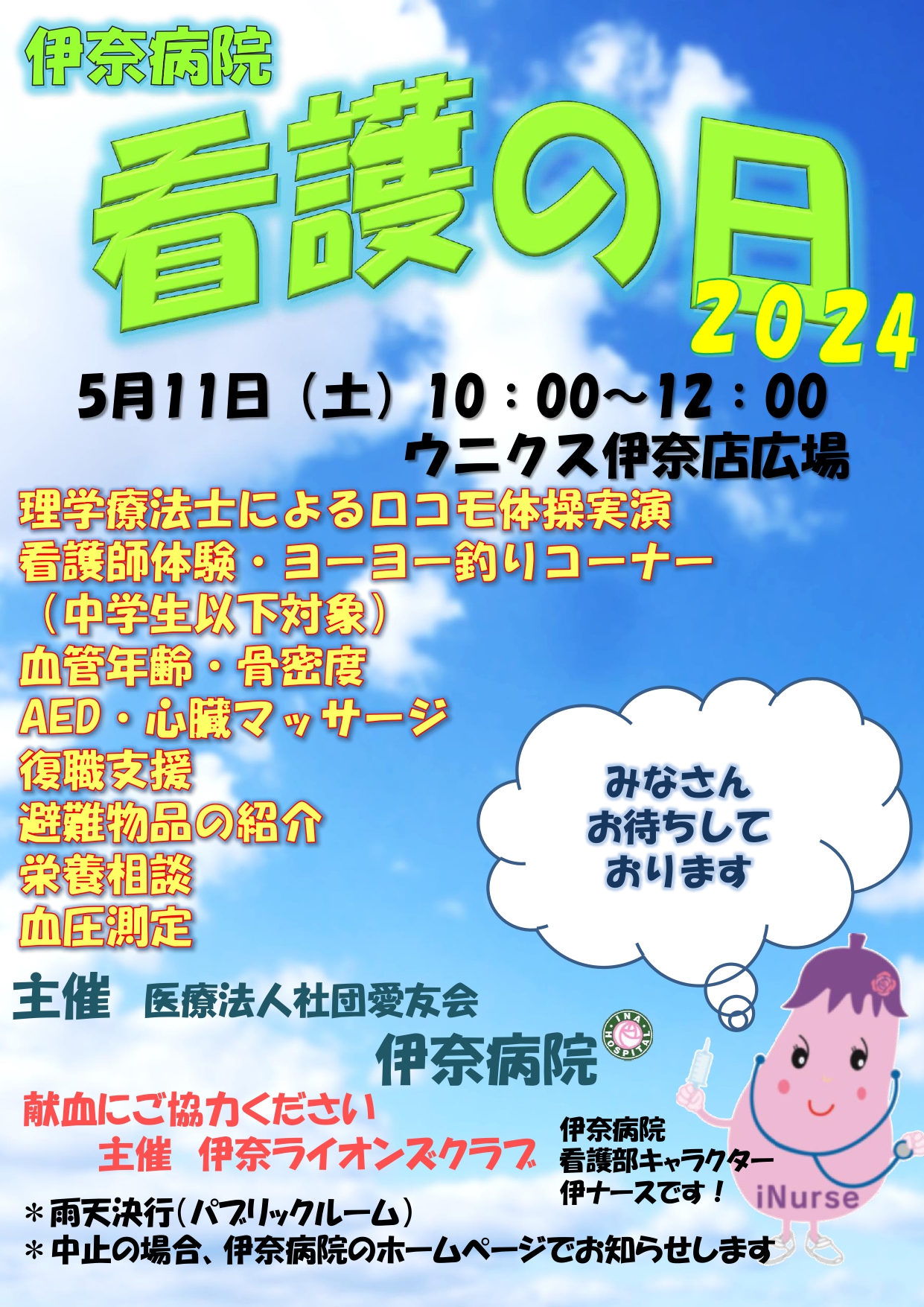 また、看護師を夢見るお子さんたち注目!の看護師体験を予定しています。さらに災害時の避難物品の紹介もありますよ。